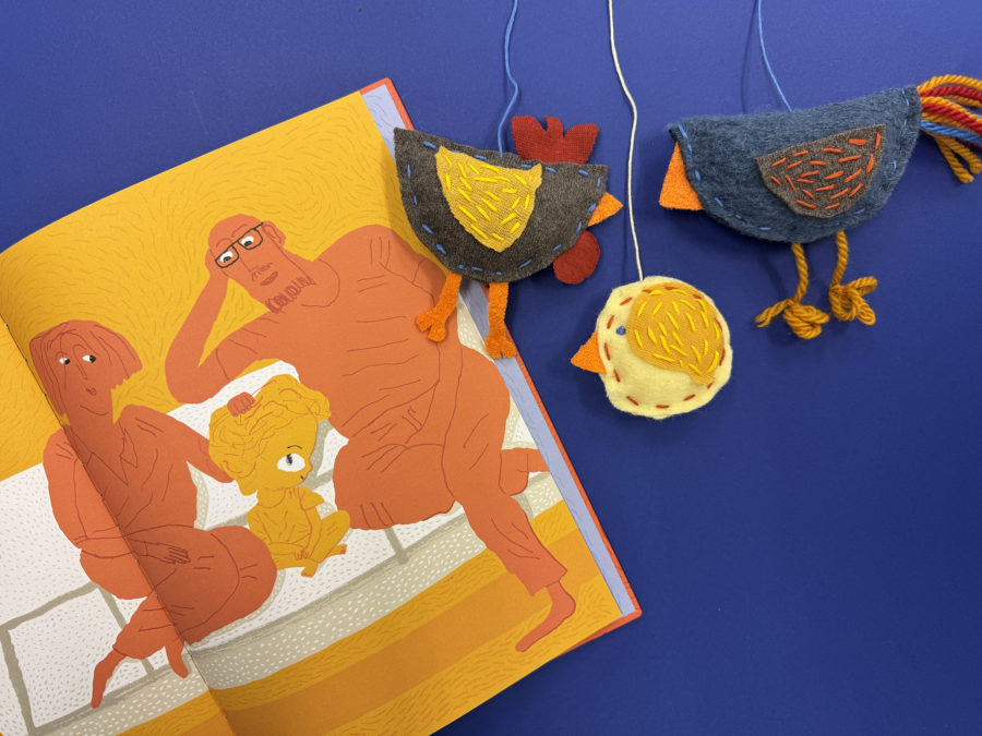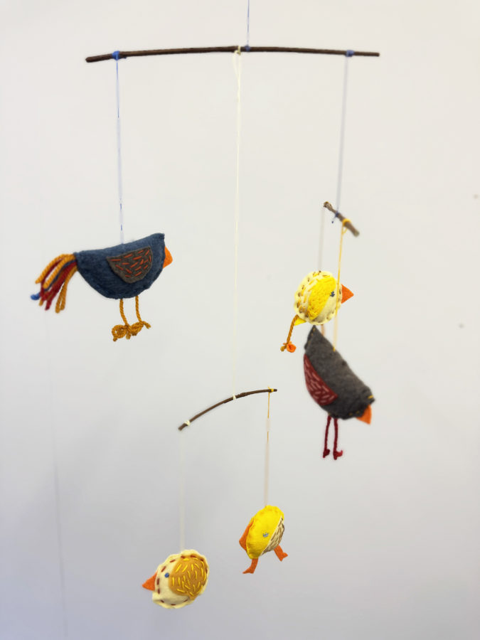 TIPS: Dere kan også lage en uro av papir. Tegn og klipp ut fugler og kyllinger av papp eller papir. La dere inspirere av aktiviteten «Lag mønster, farger og figurer fra boka». Heng opp figurer med sytråd. Dere kan også bruke grillpinner som uro-pinner.