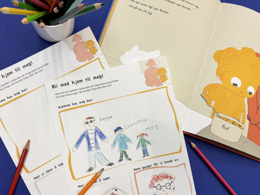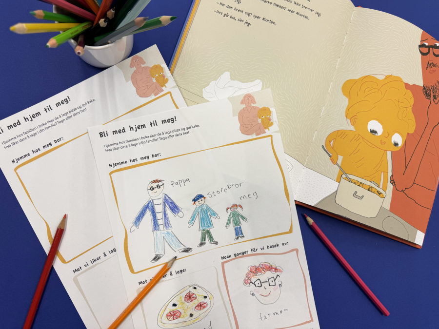 Hjemme hos familien i boka liker de å lage pizza og gul kake. Hva liker dere å lage i familien din?