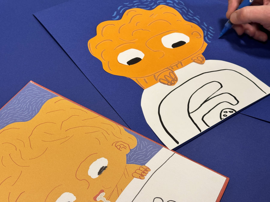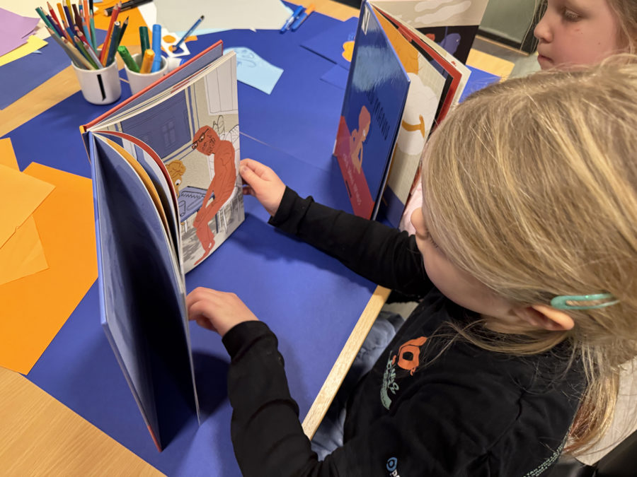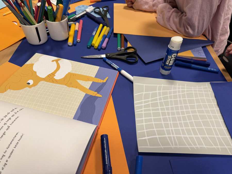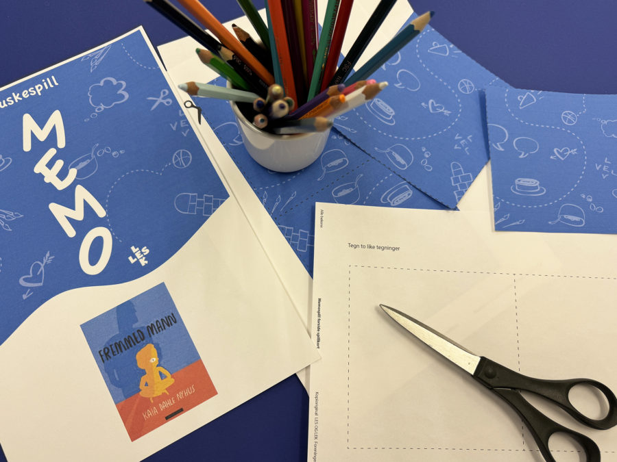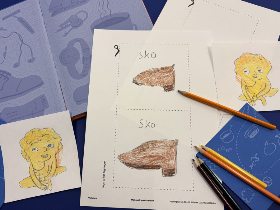 – To og to går sammen og tegner utvalgte tegninger fra boka, på hvert sitt kort, som danner kortpar til spillet. For eksempel kan en eldre elev tegne og en yngre elev fargelegge et kortpar. Dere kan også bruke matpapir til overføringstegning, og tegningene kan klippes ut og limes på tykkere papir eller papp.