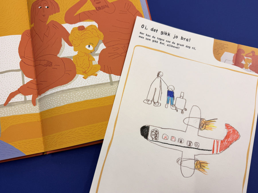 Oppmuntre gjerne barna til å se etter og «herme» etter tegningene i boka. Hvordan har illustratøren tegnet de forskjellige tingene?