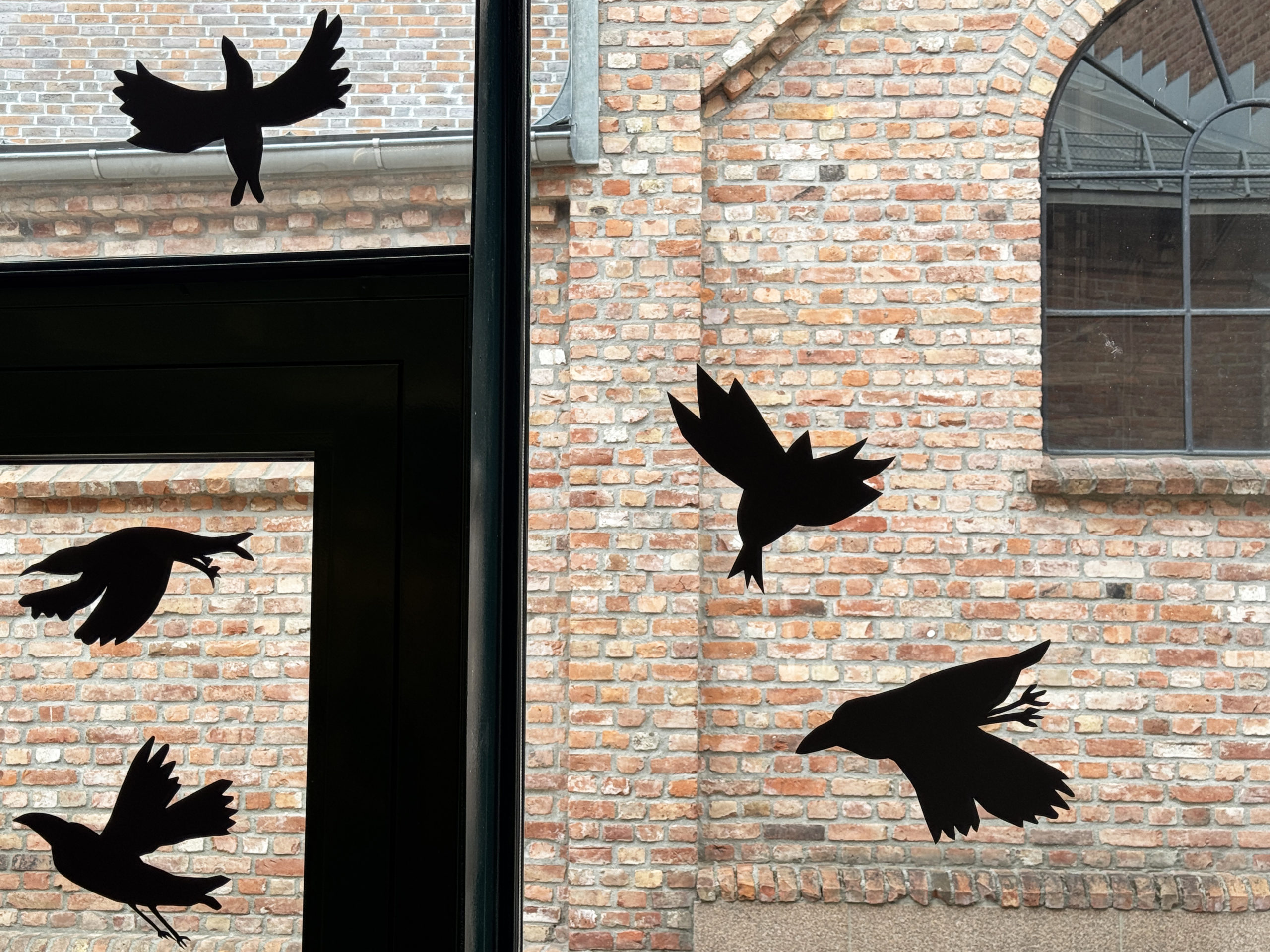 Dekorer til fest med sorte kråkesilhuetter på vindu eller vegg.