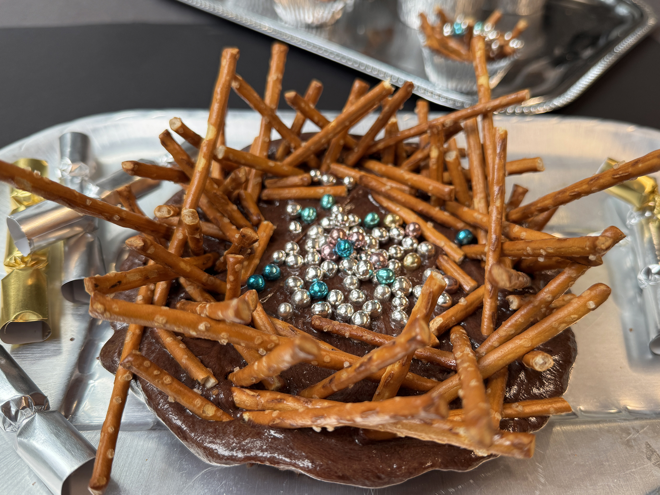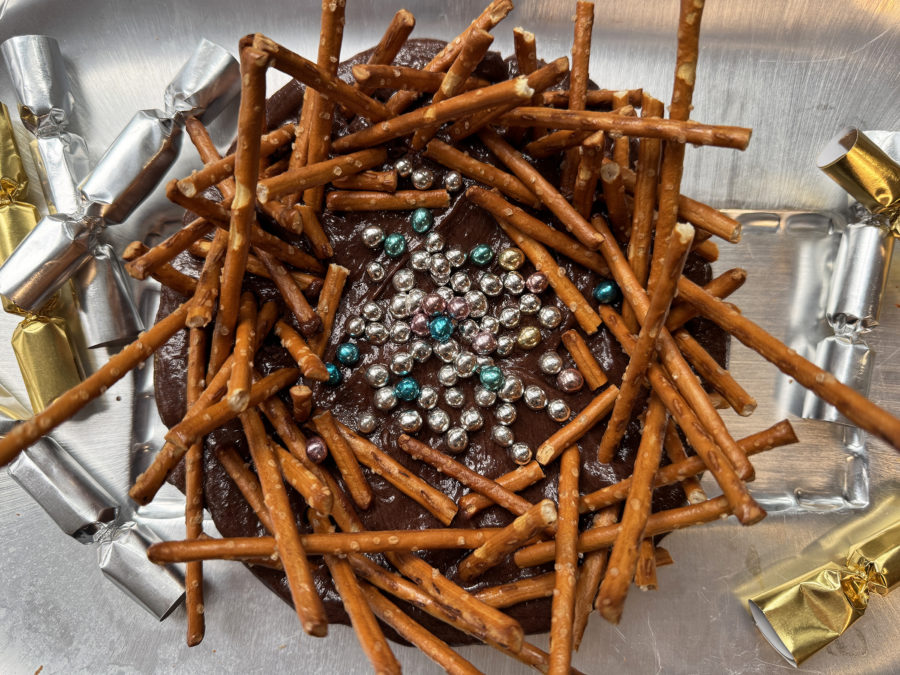 Vi foreslår kråkekaker eller kråkemuffins! Det lager dere enkelt sånn her: Lag eller kjøp sjokoladekaker eller sjokolademuffins. Lag glasur/sjokoladekrem og pynt med saltstenger og sølvkuler. Det blir fine kråkereir hvis saltstengene legges i sirkel og settes/legges litt på kryss og tvers rundt kaken/muffinsen. Sølvskattene strøs i midten.