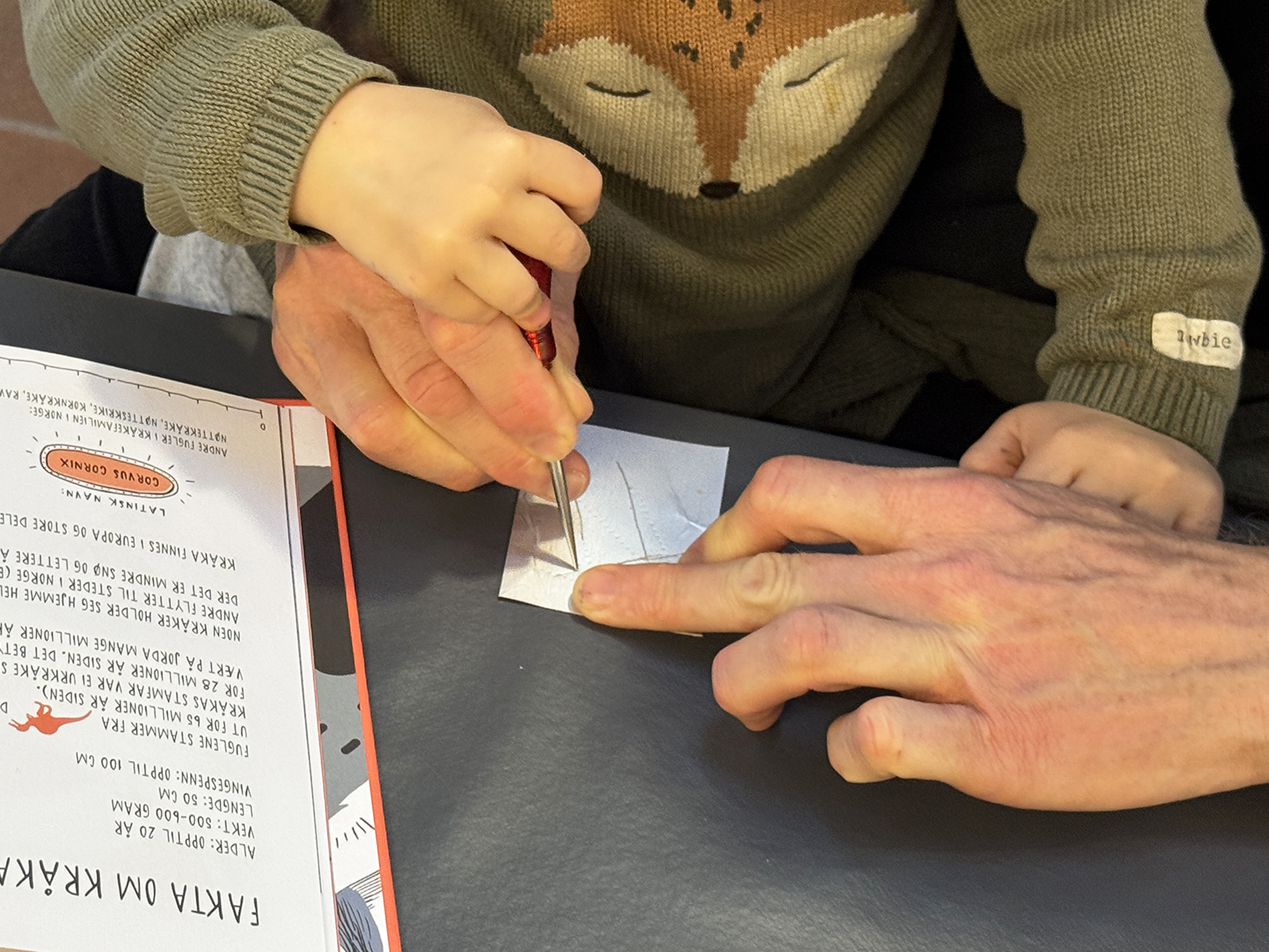 - Se oppslagene i boka for å finne inspirasjon, for eksempel oppslaget om hva kråkene liker å spise.