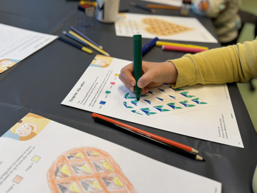 - Med farger og tusj: Lag mønster med en fargeblyant/tusj i en mørkere farge enn arket.