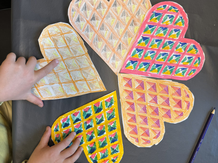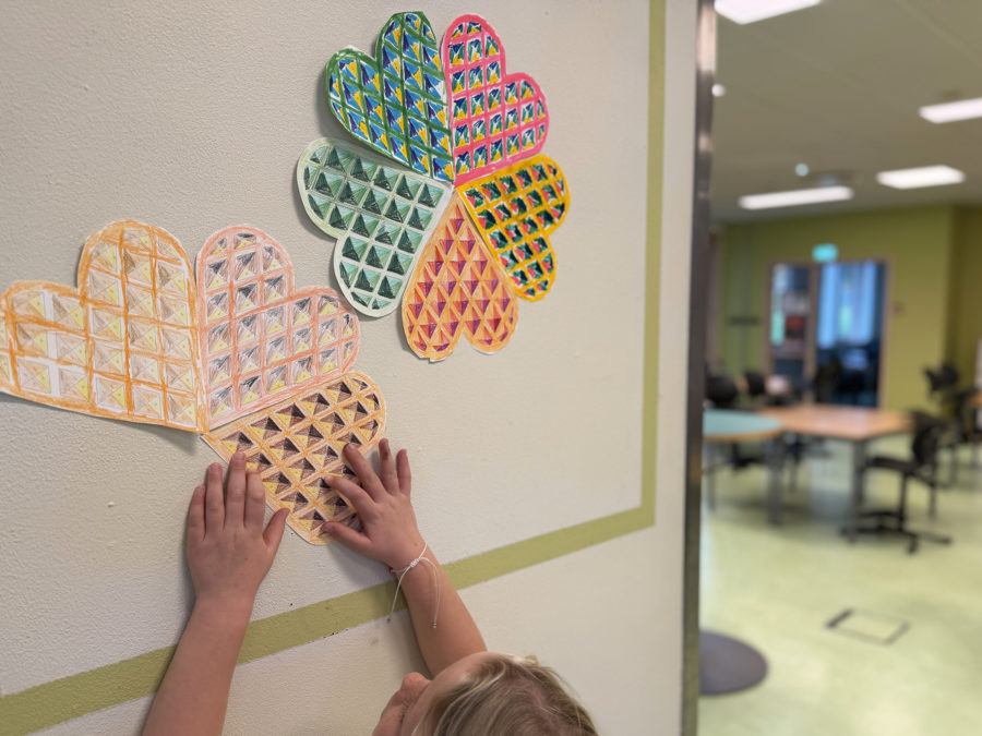 Lag et hjerte hver og heng opp «hele vaffelplater» med fem hjerter på veggen.