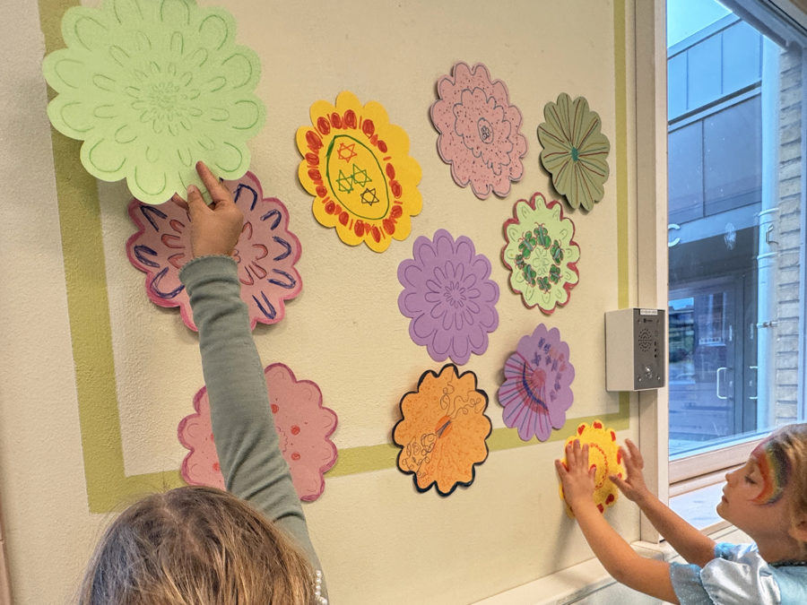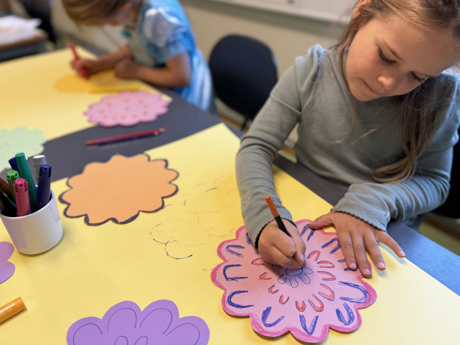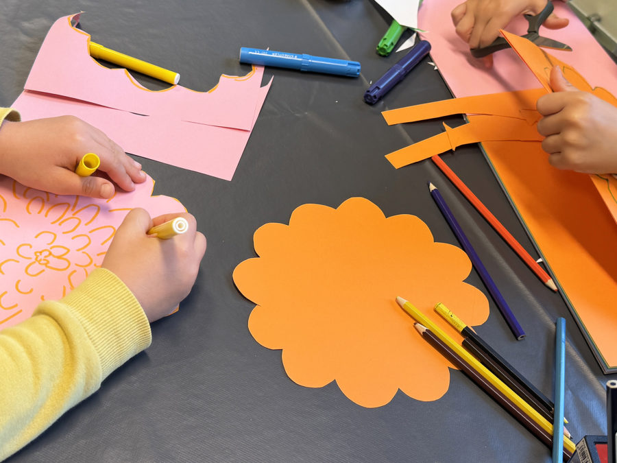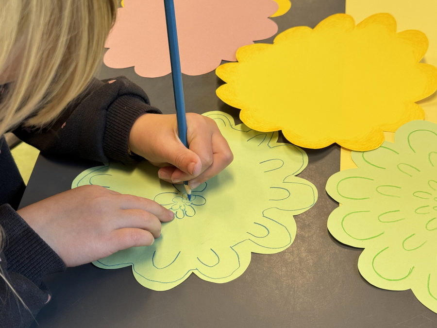 Tips: Dere kan også lage trær som i boka. Tegn eller klipp ut papir til trestammer og heng «blomstene» eller bladkronene som dere har laget på grenene.