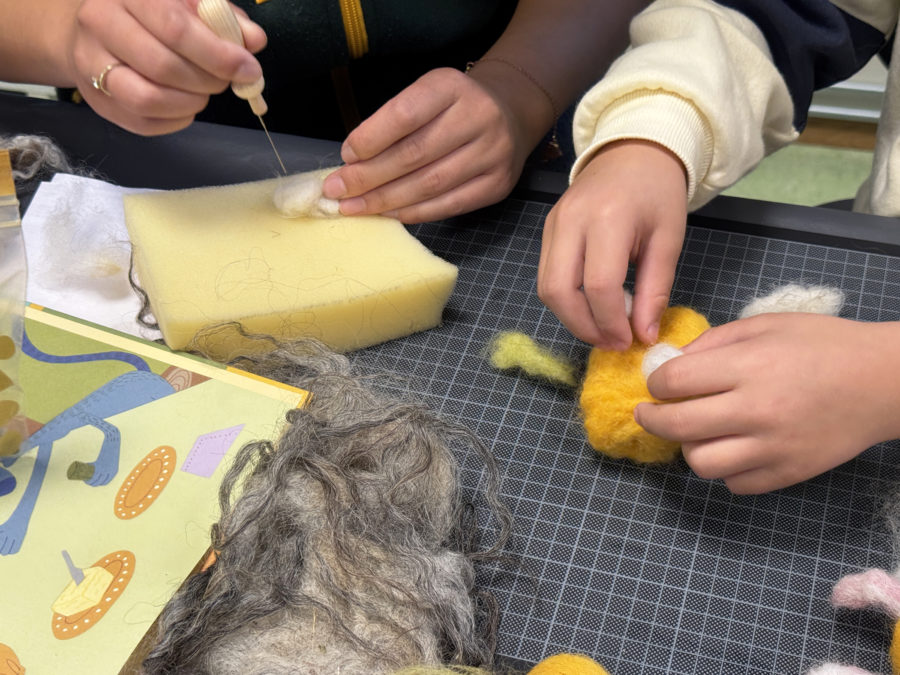 - Det er nesten ikke til å unngå at man stikker seg når man jobber med ullfiltnåler. Sørg for å ha plaster tilgjengelig og vis hvordan ulla bør holdes og hvordan man skal stikke mot arbeidsplaten og bort fra egne fingre. Det er også viktig å føre nålen rett inn og ut fra arbeidet uten å bøye eller skifte vinkel på nåla. Dette for å unngå at nåla brekker, og også for å unngå å stikke seg.