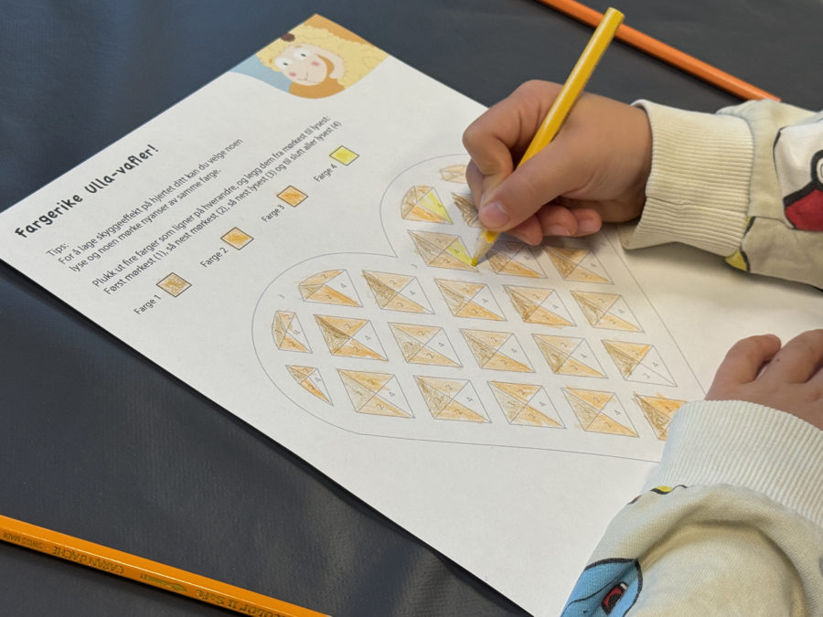 Her kan dere fargelegge vaffelhjerter med en morsom tredimensjonal effekt.