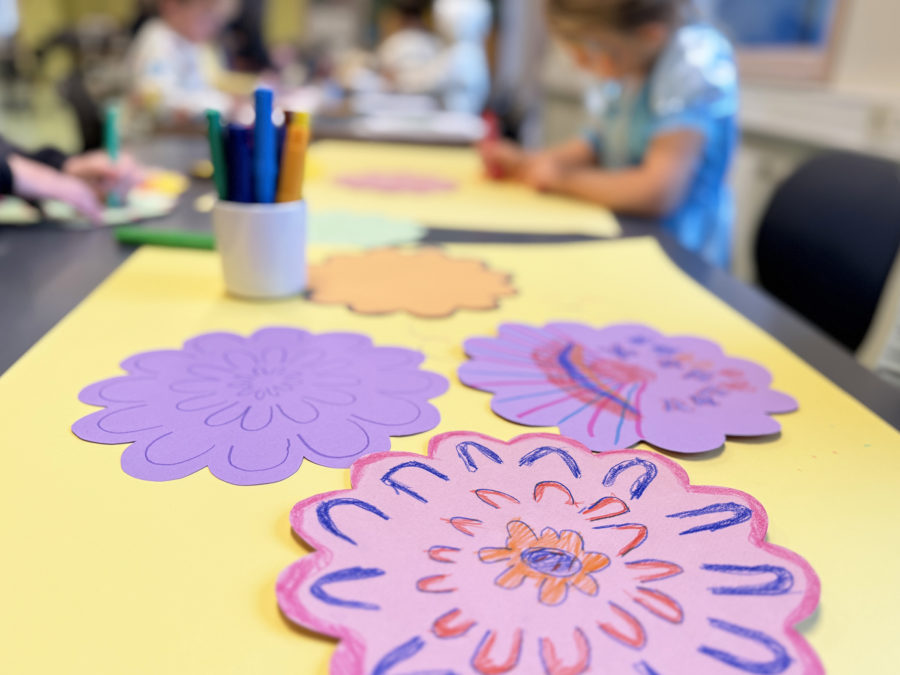 - Se på blomstene og plantene i boka om Ulla. Hvilke farger ser du? Velg papir i de samme fargene.