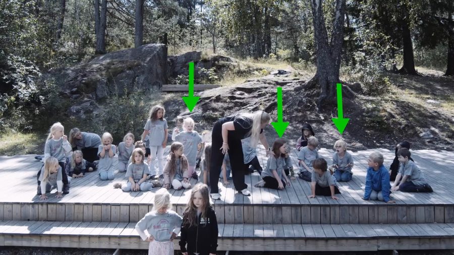 - Alle elevene er sauer, bortsett fra en som er ulv. Sauene og ulven står i hver sin ende av rommet.