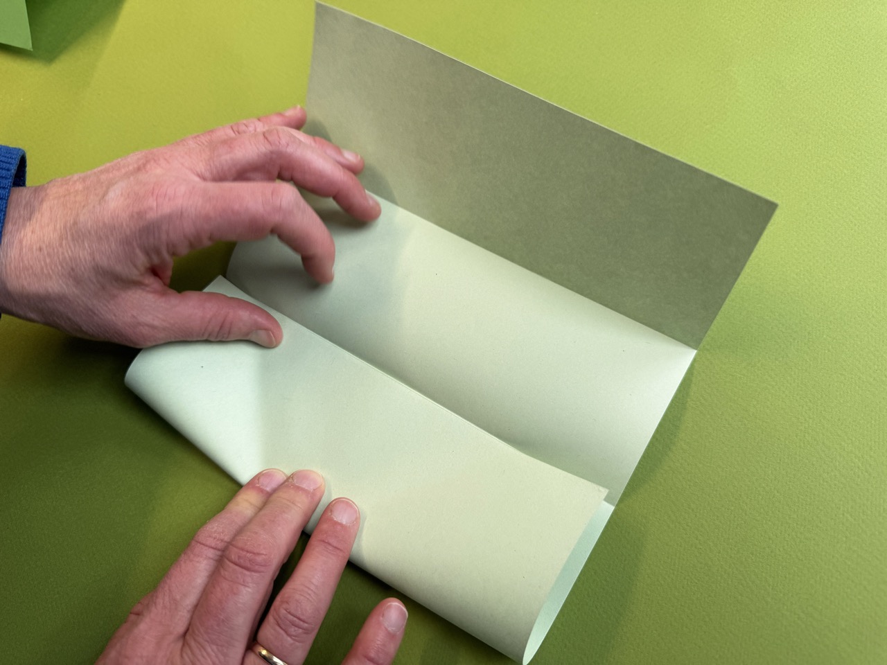 Lag små bøker og skriv og tegn inn deres (hemmelige?) språk i dem. Se bilder og film for tips til hvordan lage en enkel brettebok av A4-ark.